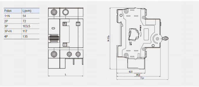 Pole: 1p+n, 2p, 3p, 3p+n, 4p